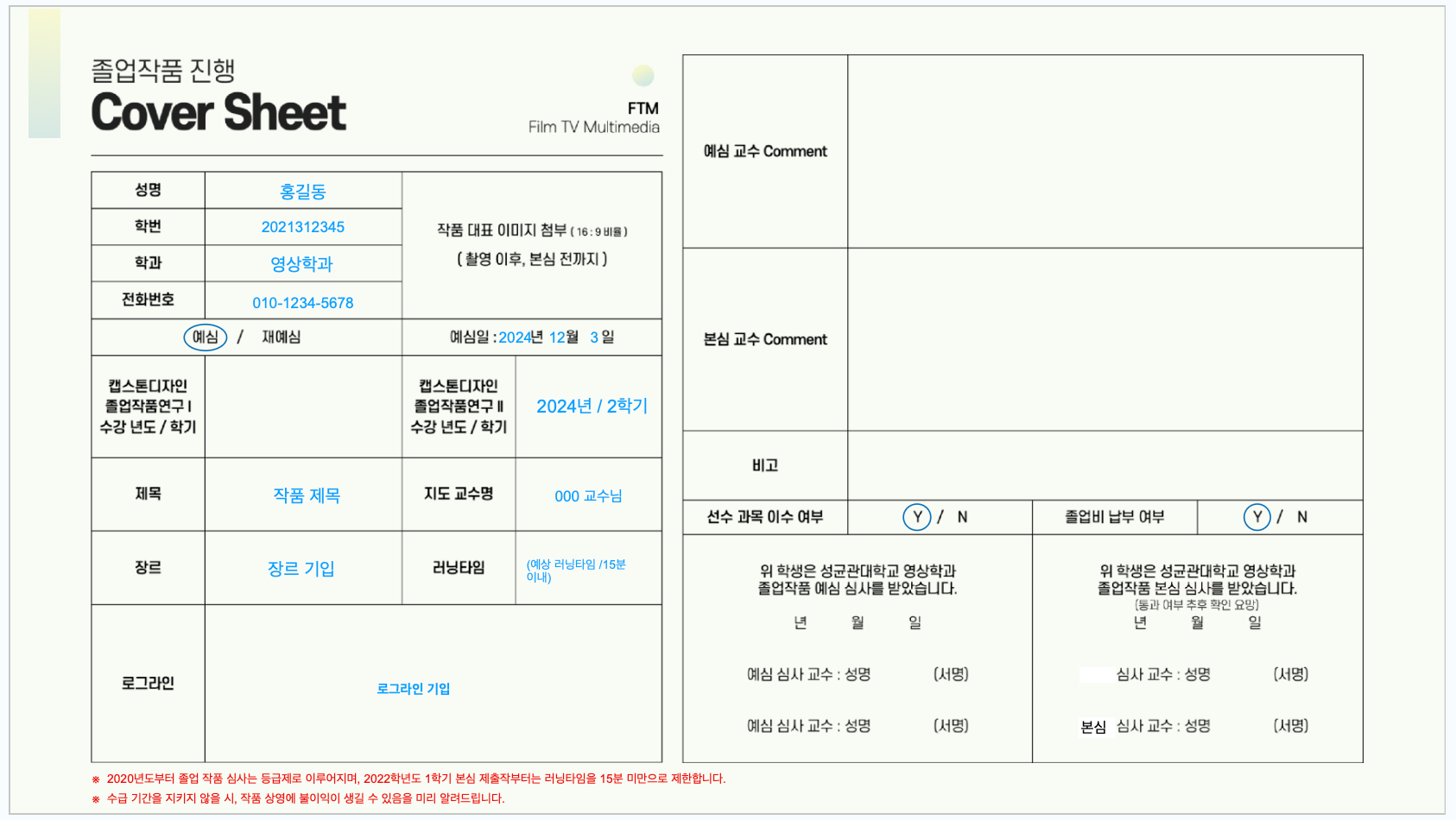 (ex: [CoverSheet&PPT]홍길동_2021312345_***교수님 / [프리프로덕션북]홍길동_2021312345_***교수님)